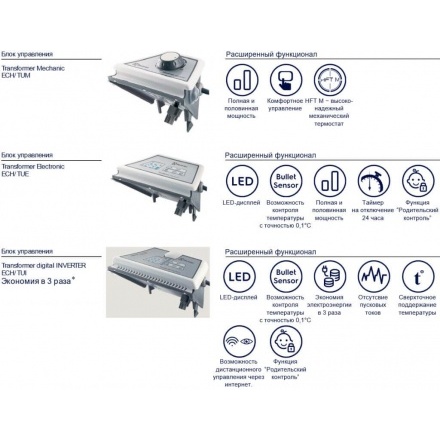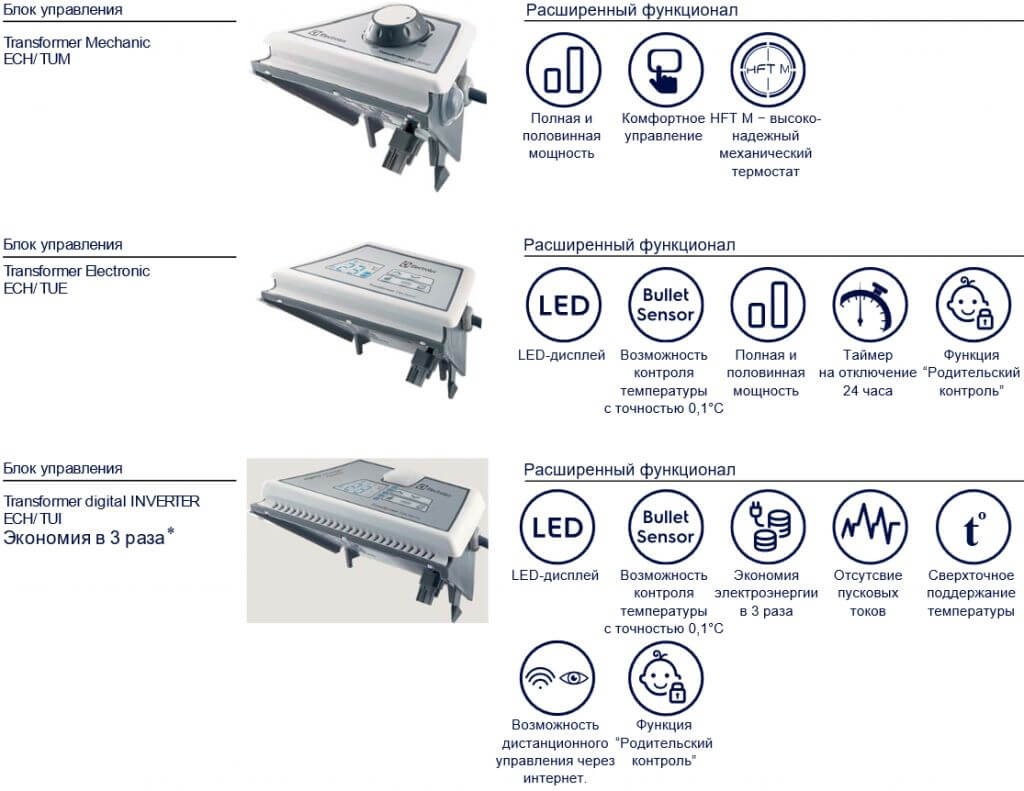 Конвектор электрический Electrolux серии Rapid Transformer System с инновационной технологией обогрева помещений Transformer System. Она позволяет самостоятельно выбирать комплектацию конвектора и его функции: отопительный модуль, блок управления и тип установки, не переплачивая за лишние элементы.