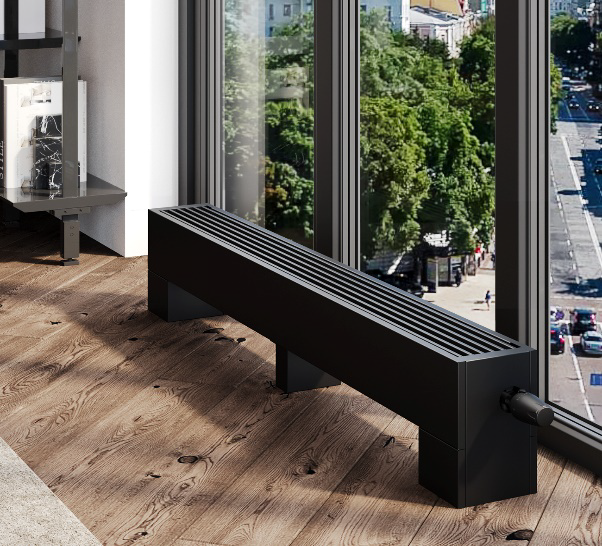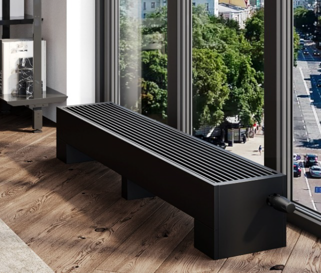 Такие конвекторы устанавливаются непосредственно под окнами или в специальных нишах, поэтому занимают мало места и прекрасно вписываются в интерьер. Их применение также оправдано вдоль окон с малой высотой подоконника, где использование радиаторов стандартной высоты противоречит требованиям эстетики.