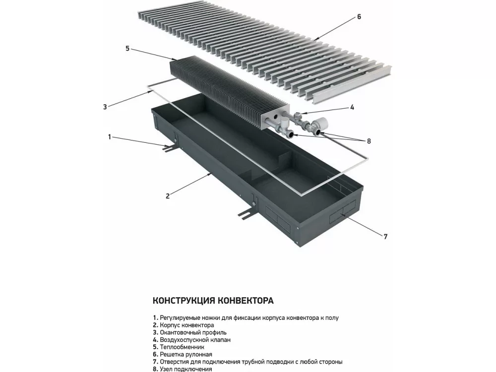 | Тип подключения | Конвекторы, встраиваемые в пол |