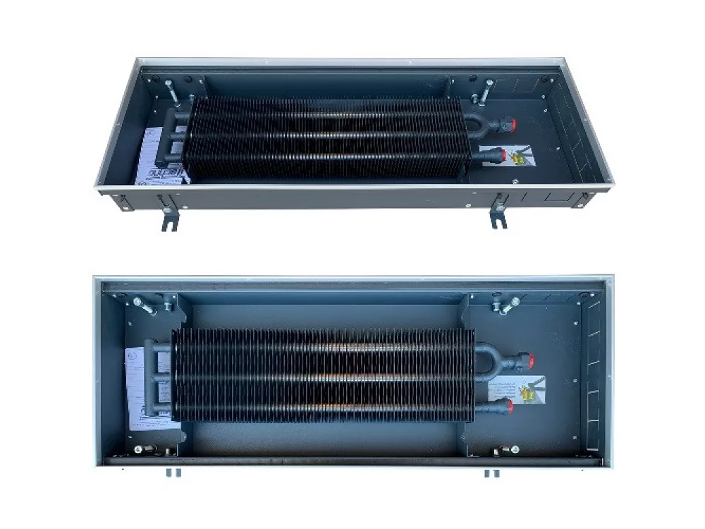 Встраиваемые конвекторы Техно длиной до 2400 мм – цельные. Далее конвекторы свыше 2400 мм состоят из двух секций корпуса и теплообменника. Две части (секции) теплообменник соединяется между собой гибкой нержавеющей подводкой. Стоимость проходных моделей Techno (KVP) рассчитывается по запросу.