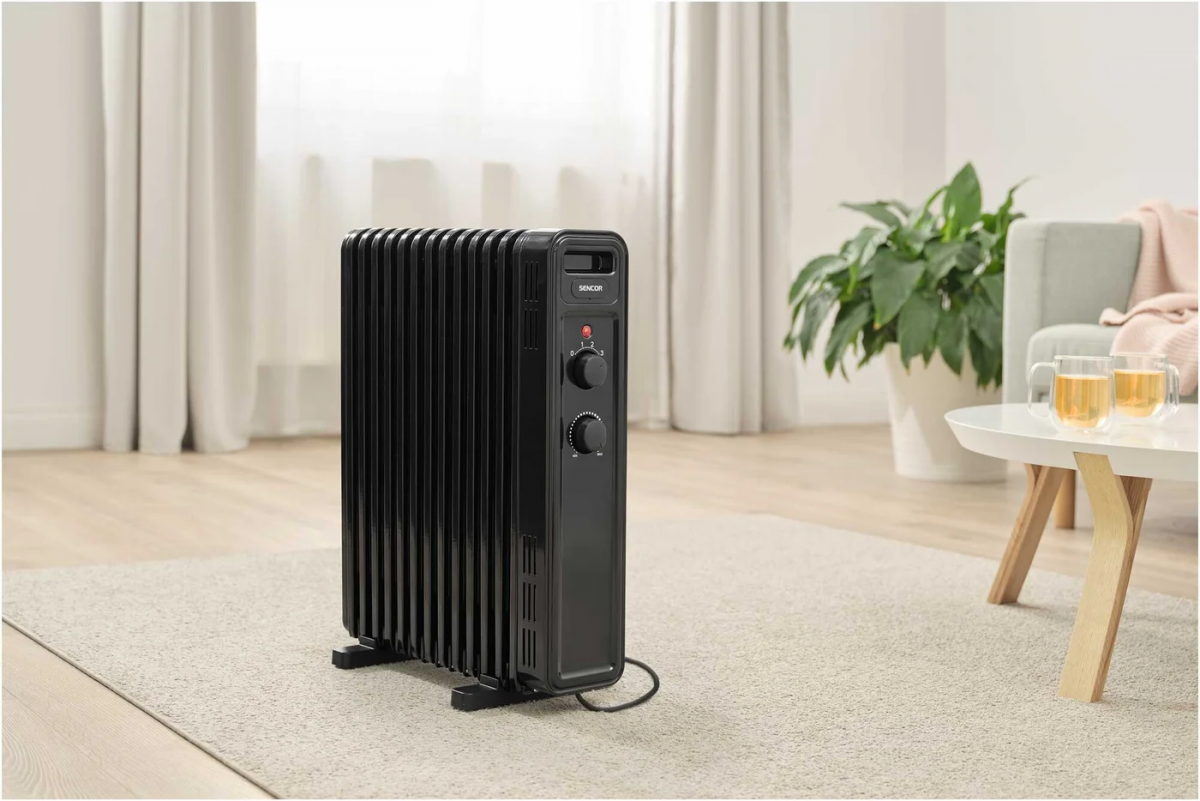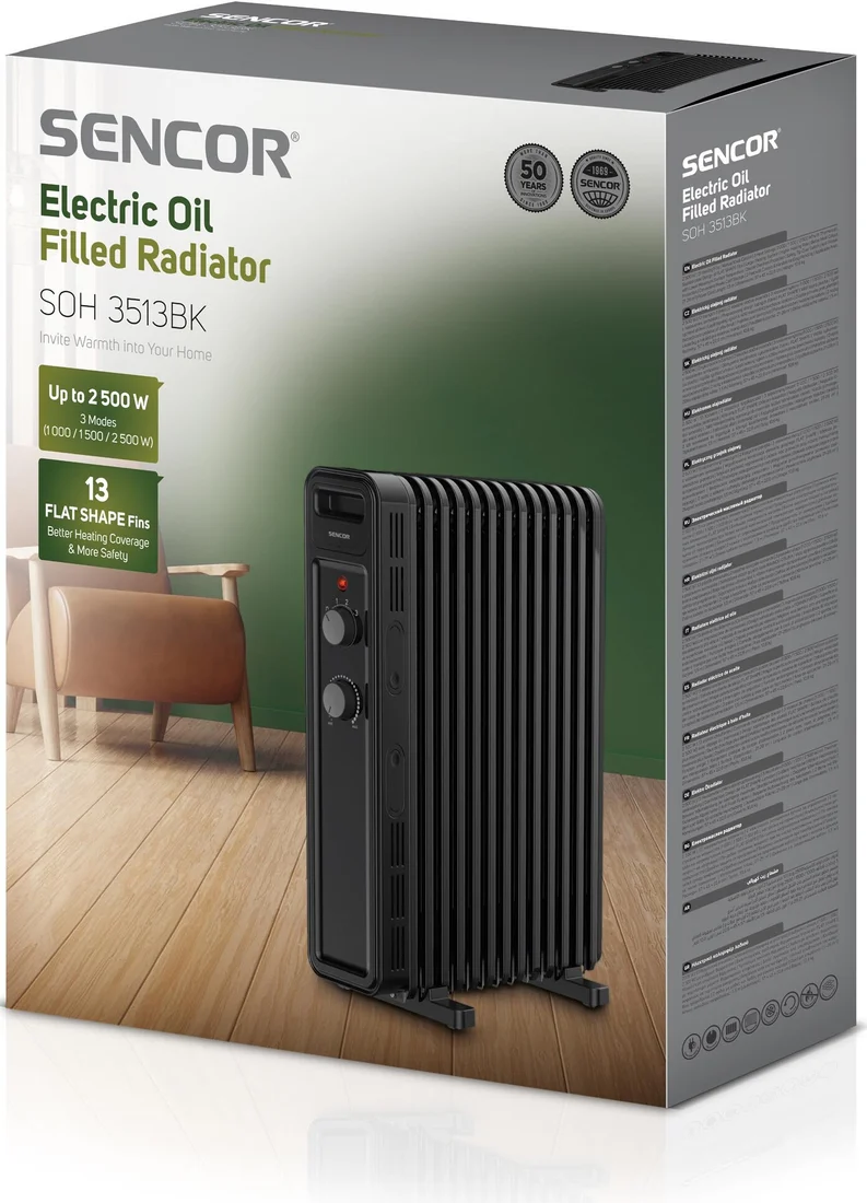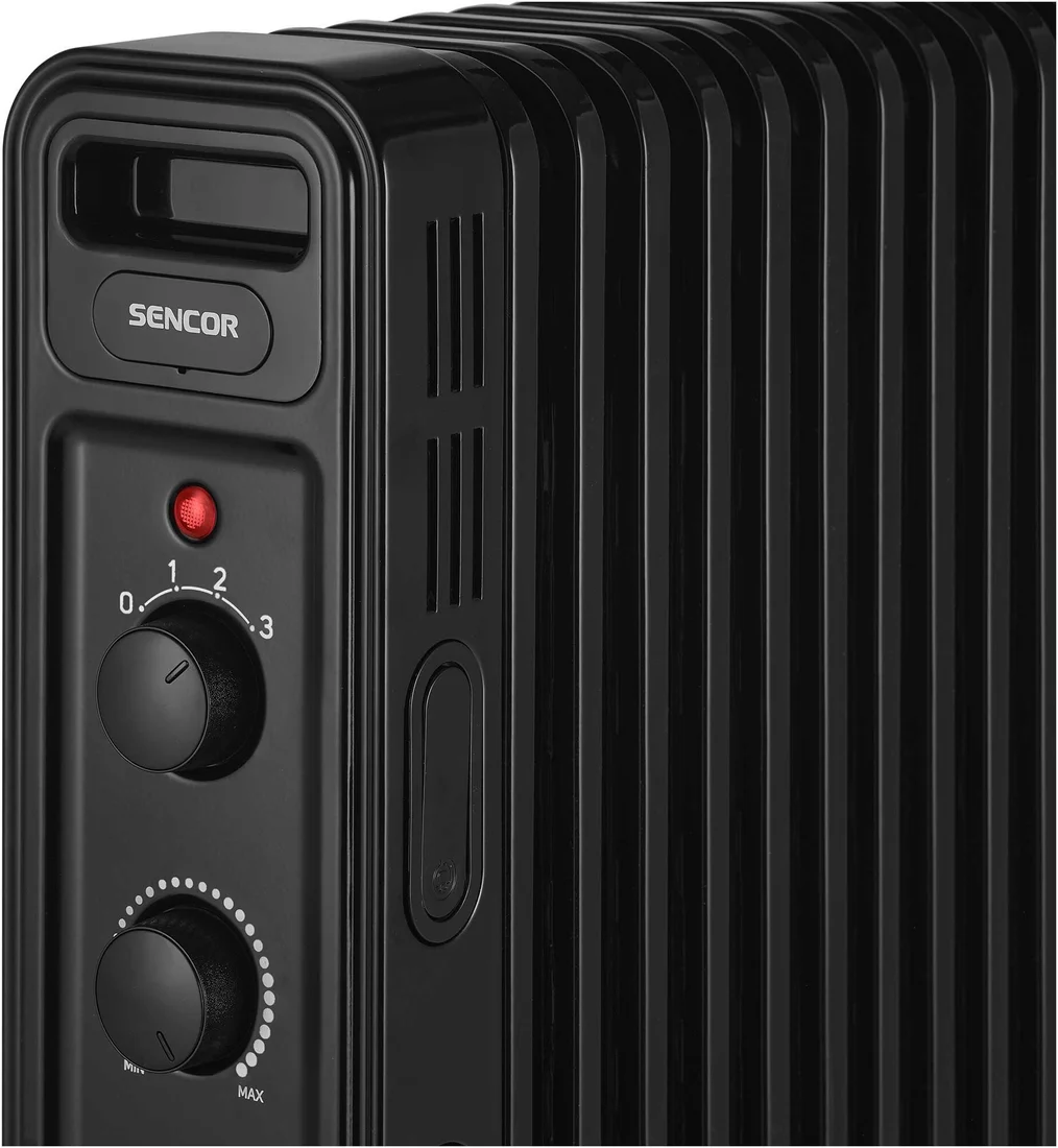 Масляный радиатор Sencor SOH 3513BK, тип нагревательного элемента: ТЭН, мощность: 2500 Вт, площадь обогрева: 25 м2, 13 секций, колеса в комплекте