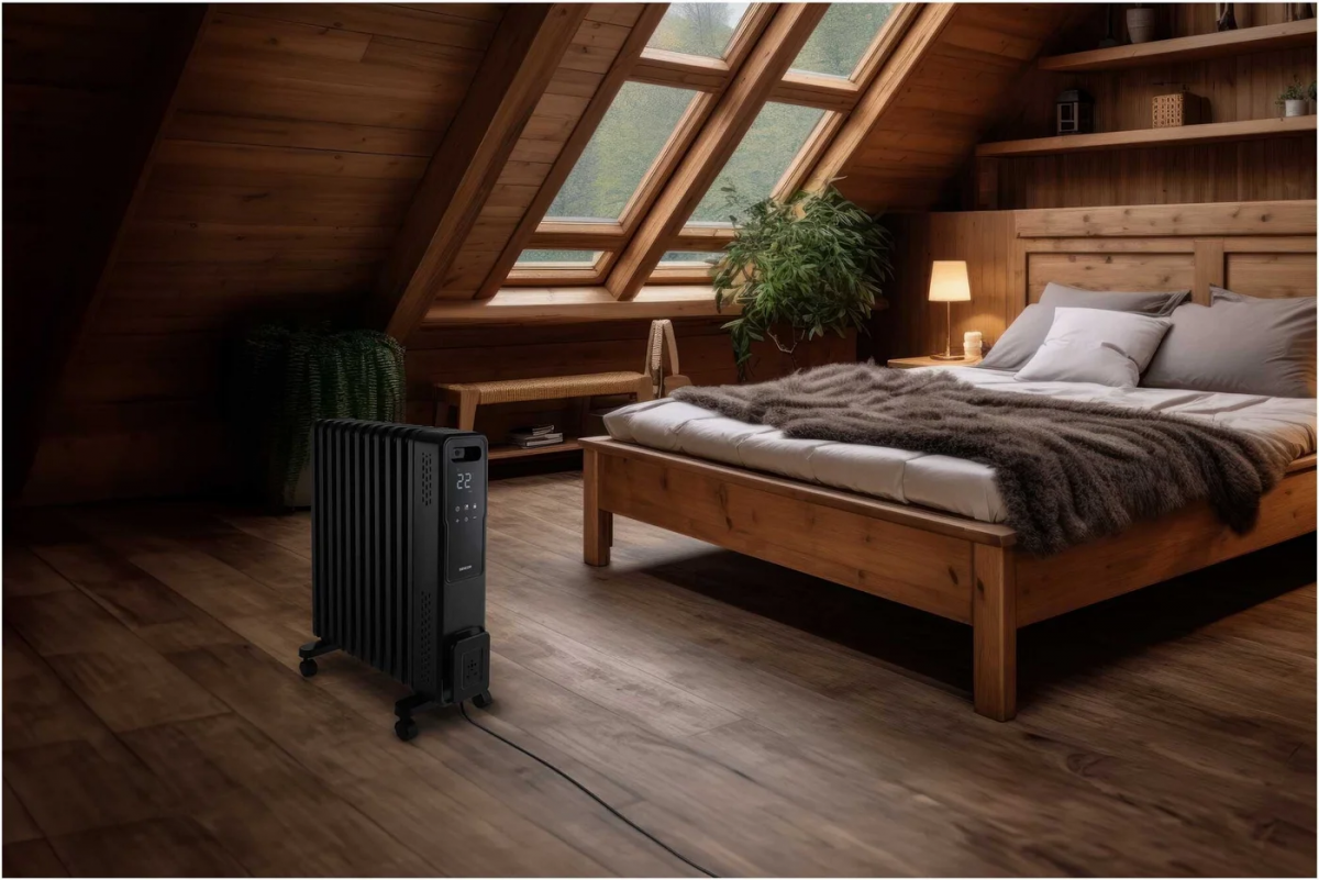 Модель легко перемещается благодаря ручке и колесикам, а передний держатель предназначен для аккуратного хранения кабеля питания. Радиатор рассчитан на обогрев площади до 27 м², не требует технического обслуживания и обеспечивает комфортное использование в любое время года.