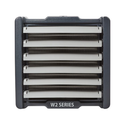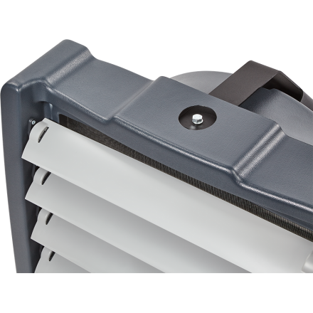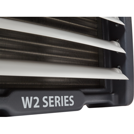 Водяной тепловентилятор Ballu BHP-W2-70-LN – прибор для обогрева складских и промышленных помещений большой площади с высотой потолков более 6 метров. Тепловая мощность прибора от 35 до 70 кВт в зависимости от режима производительности и температуры теплоносителя. Максимальная рабочая температура теплоносителя 130°С при давлении 15 бар, что позволяет использовать в качестве теплоносителя пар и перегретую воду. Осевой вентилятор диаметром 450 мм создает воздушный поток длиной 24 метра и обеспечивает максимальную производительность до 4800 м³/ч. В летнее время года водяной тепловентилятор можно использовать в качестве файнкола, для этого необходимо подключить его к источнику холодной воды.