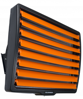 Тепловой поток эффективно распределяется и направляется регулируемой системой жалюзи. Для выравнивания температуры в больших помещениях тепловентиляторы могут работать в комплексе с дестратификаторами, стабилизирующими воздушный поток.