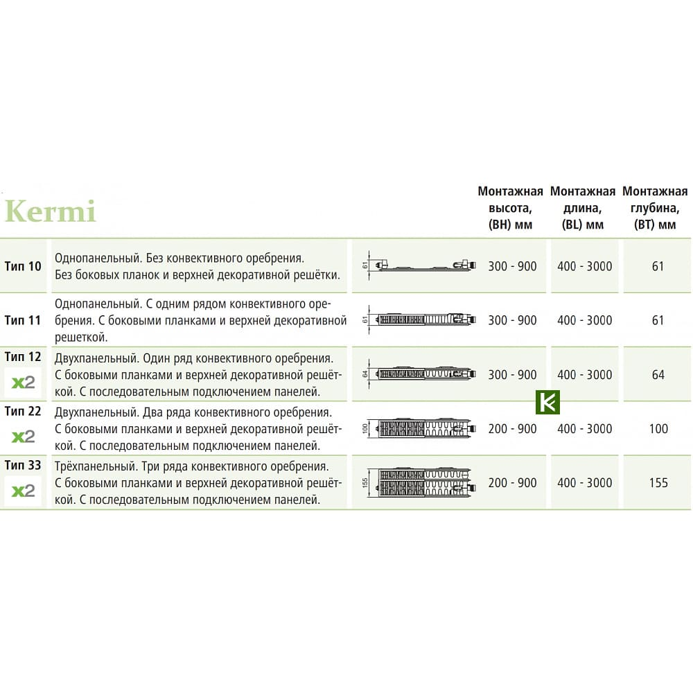 Радиатор стальной Kermi Therm-X2 Profil-Kompakt FKO 33 600 700, боковое подключение.