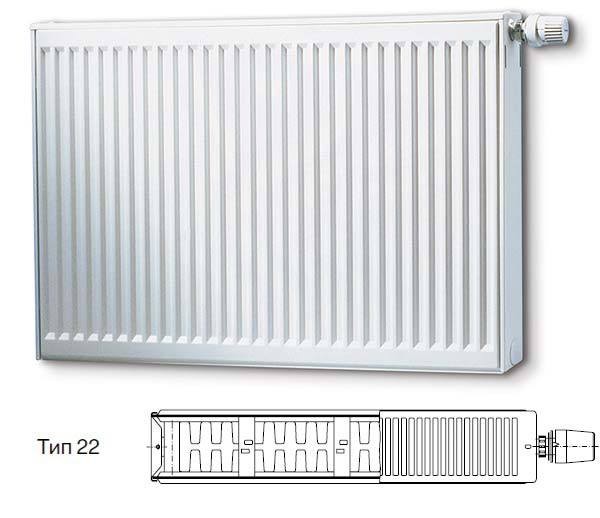 Стальные панельные радиаторы отопления Buderus Logatrend K-Profil с боковым подключением 22 типа представляют собой 2 профилированные панели, к внутренней стороне каждой приварено по 1 конвектору. Радиатор имеет четыре боковых подключения (2 с правой и 2 с левой стороны) с внутренней резьбой G 1/2.