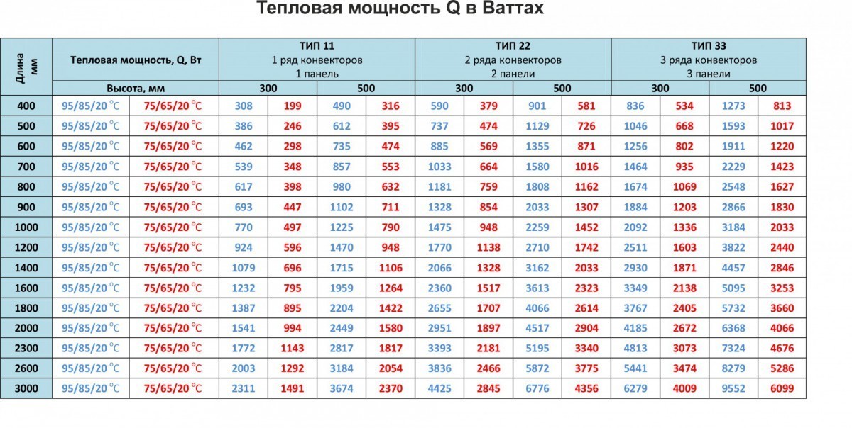 - по длине радиаторы имеют параметры от 400 мм до 3000 мм с шагом 100-200 мм