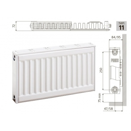 Например, радиатор стальной Prado Classic, тип 11, высота 300 и длина 800 PRADO Classic 11300800.