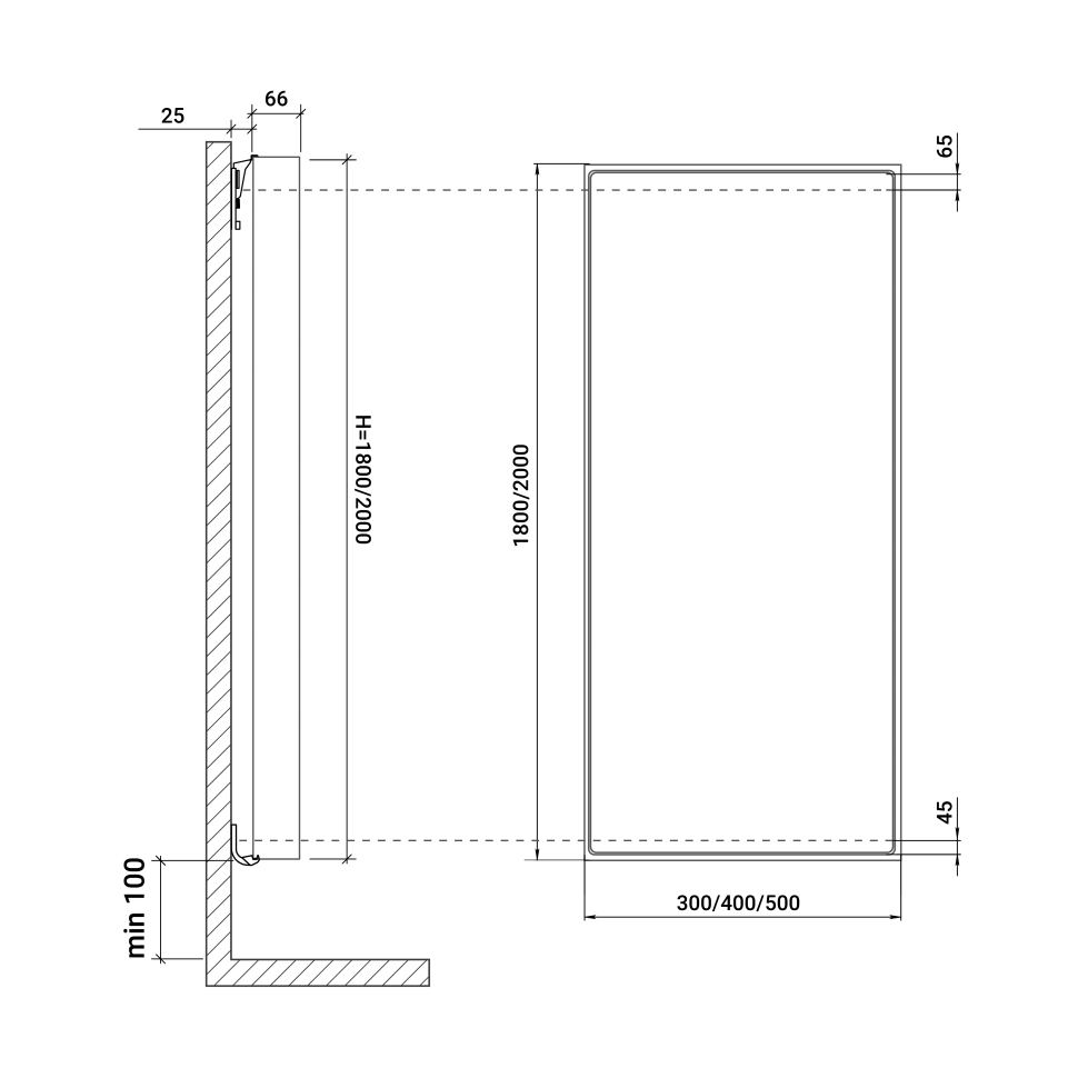 Стальной вертикальный дизайн-радиатор Royal Thermo Flat 300-1800 Bianco Traffico, ширина 300 мм., высота 1800 мм, цвет белый.