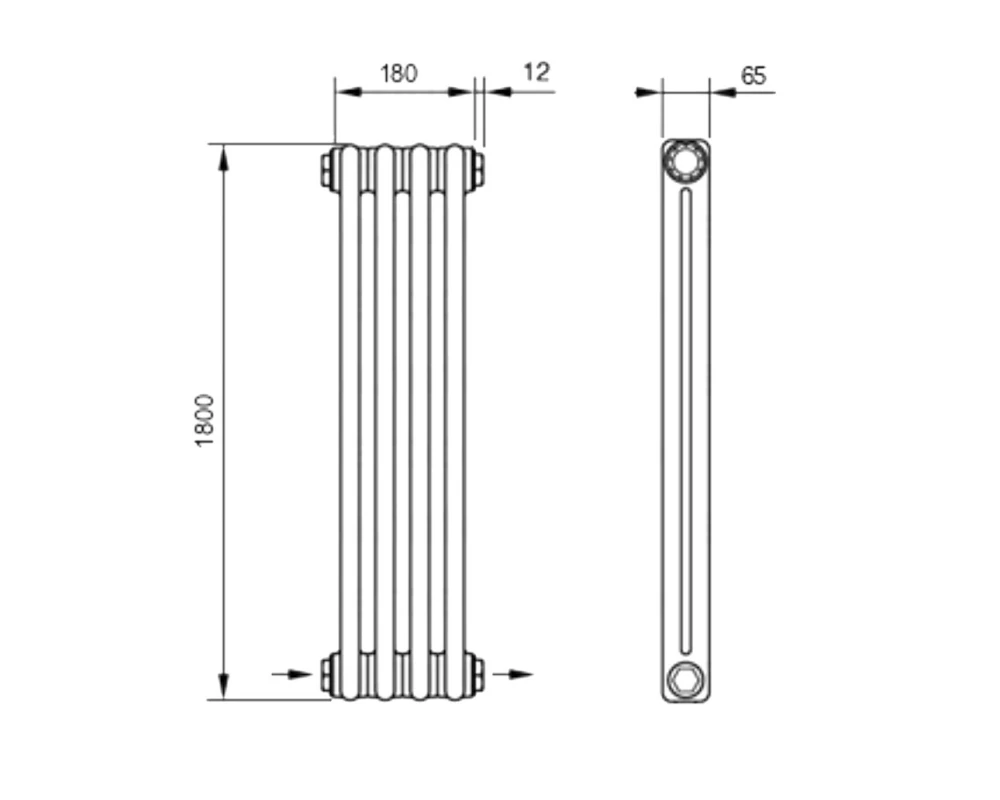 Радиатор Arbonia 4/2/24/12/1/3/12/3/0/0 CF RAL 7016 matt 4 секции, подключение слева-направо, со встроенным воздушным клапаном вверху справа, высота 1800 мм, длина 204 мм, глубина 65 мм + 30 мм (крепления, приобретаются дополнительно), цвет антрацид матовый.