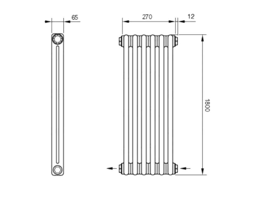 Радиатор Arbonia 2180 6/2/42/12/1/1/12/3/0/0 CF RAL 9005 matt 6 секций, подключение справа-налево, со встроенным воздушным клапаном вверху слева, высота 1800 мм, длина 294 мм, глубина 65 мм + 30 мм (крепления, приобретаются дополнительно), цвет черный матовый.