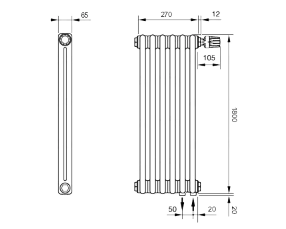 | Высота радиатора, мм | 1800 |