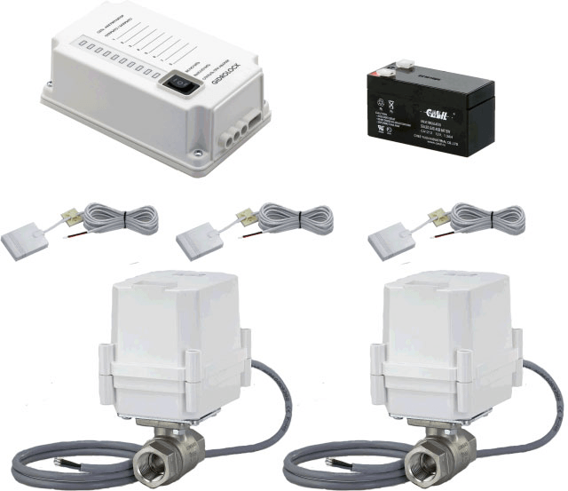 Принцип работы системы защиты от протечек Gidrolock Квартира 1 ULTIMATE TIEMME: после попадания воды на электроды датчика протечки, контакты замыкаются и датчик посылает сигнал на блок управления GIDROLOCK PREMIUM. Блок управления посылает сигнал на шаровые электроприводы (состоят из шаровых кранов и электроприводов к ним), которые в свою очередь перекрывают шаровые краны, и подача воды прекращается. т.е., если случится авария, то система самостоятельно, в автоматическом режиме перекроет подачу воды (в течении нескольких сек) путем закрытия дополнительно установленных шаровых кранов в системе водоснабжения с помощью электроприводов потоп. При этом, подача воды не возобновится даже в том случае, если отключат электроэнергию. Система "GIDROLOCK" оснащена звуковой сигнализацией, которая оповестит вас о том, что произошла авария. Питание блока управления системы происходит от 230 Вольт, далее все остальные устройства системы питаются от 12 В (через аккумулятор), что является безопасным напряжением.