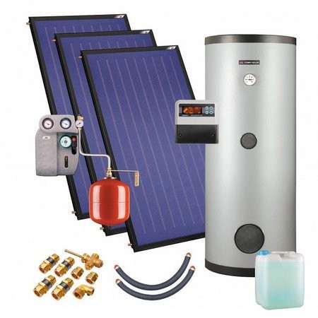 Солнечный коллектор (водонагревательная установка) Kospel ZSH-3/300 triSOL. Для упрощения подбора соответственных элементов солнечной водонагревательной установки компания Kospel предлагает готовые комплекты таких установок. Комплекты для крепления коллекторов на крыше в состав установки не входят. Приобретаются отдельно в зависимости от типа крыши. Элементы представленных комплектов солнечных установок выбраны при следующих условиях: среднегодовой 60% уровень тепловой энергии, необходимой для обеспечения ГВС, получаемой от солнечной системы, 1,2 – 1,6 м2 рабочей поверхности абсорбера на 1 человека, среднее суточное потребление горячей воды около 60 литров на 1 человека, высота системы до 6 м (более высокие и более объемные системы должны быть спроектированы квалифицированным специалистом).