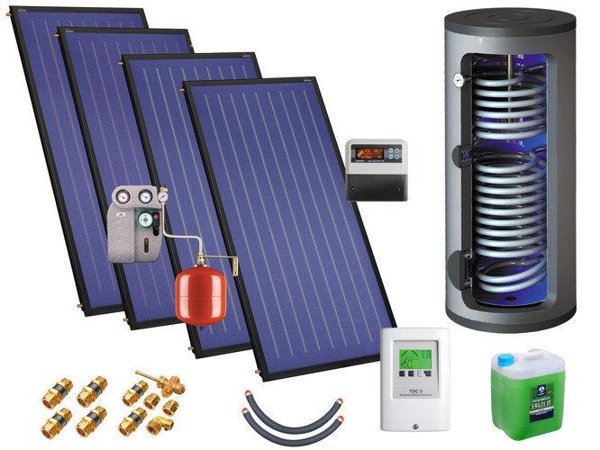 Солнечный коллектор (водонагревательная установка) Kospel ZSH-4/400 quattroSOL. Для упрощения подбора соответственных элементов солнечной водонагревательной установки компания Kospel предлагает готовые комплекты таких установок. Комплекты для крепления коллекторов на крыше в состав установки не входят. Приобретаются отдельно в зависимости от типа крыши. Элементы представленных комплектов солнечных установок выбраны при следующих условиях: среднегодовой 60% уровень тепловой энергии, необходимой для обеспечения ГВС, получаемой от солнечной системы, 1,2 – 1,6 м2 рабочей поверхности абсорбера на 1 человека, среднее суточное потребление горячей воды около 60 литров на 1 человека, высота системы до 6 м (более высокие и более объемные системы должны быть спроектированы квалифицированным специалистом).