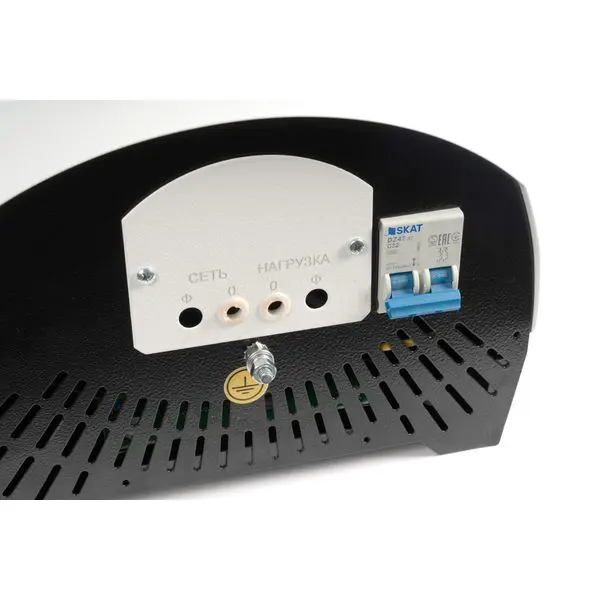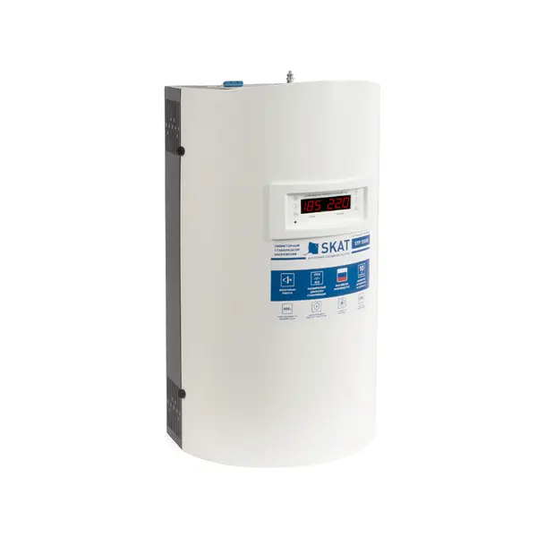 SKAT STP-20000 исп. Н – стабилизатор напряжения с симисторными ключами управления. Качественная элементная база, цифровая индикация, безопасное подключение и революционная форма корпуса.