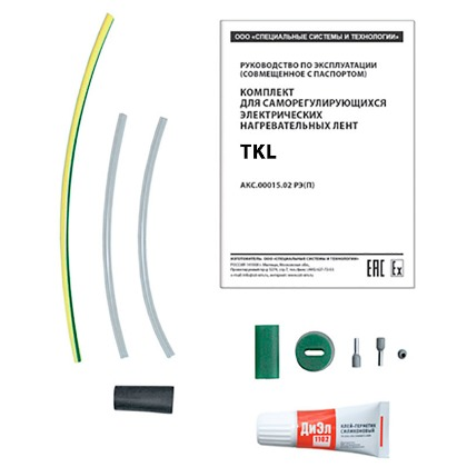 Стандартный комплект для устройства концевой заделки и ввода саморегулирующихся нагревательных лент в монтажные коробки. Включает в себя наконечники из кремнийорганической резины, решение позволяющие просто и быстро произвести монтаж заделки концов лент.