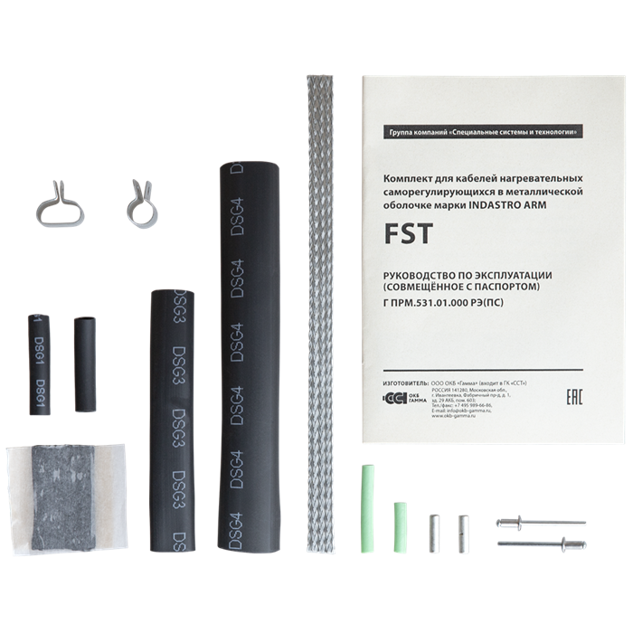Все компоненты комплекта FST подобраны таким образом, чтобы при правильном монтаже обеспечивать долговечность, герметичность, электробезопасность систем электрообогрева на основе нагревательного кабеля в броне IndAstro ARM.