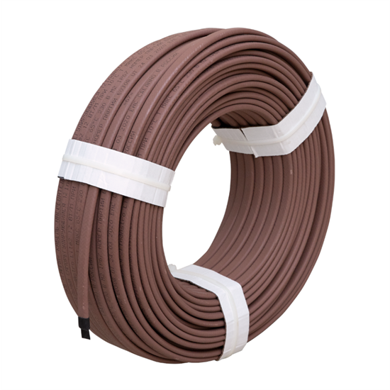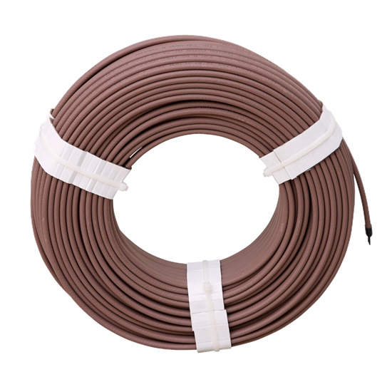 Нагревательный кабель состоит из двух токоведущих жил диаметром 0,88 мм2 находящихся в полупроводящей матрице, изоляционного слоя, а также внешней полиолефиновой рубашки обеспечивающей повышенную устойчивость к УФ (UV) излучению.