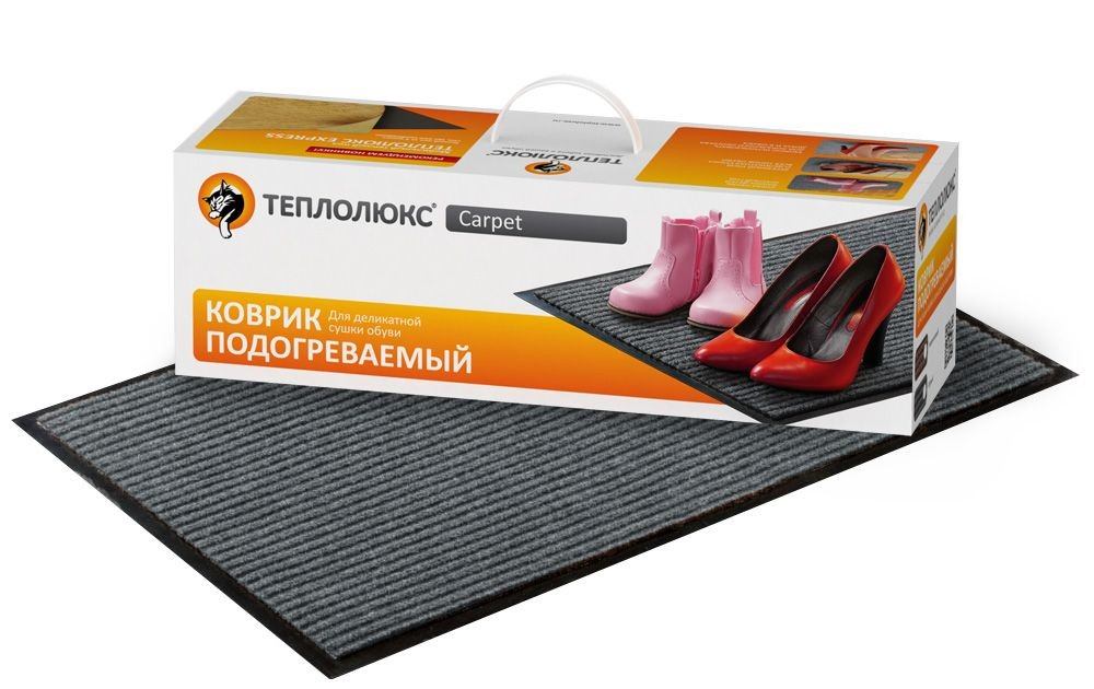 Коврик с подогревом «Теплолюкс» CARPET предназначается для обогрева ног и сушки обуви из различных материалов. Его можно использовать в жилых помещениях и в офисе. Он изготовлен из влагостойкой и герметичной ПВХ-основы и полипропиленового покрытия с ворсом. Коврик работает от сети, оснащен евровилкой, гибким кабелем, стойким к механическим воздействиям. Прочное покрытие изделия очень легко чистится.