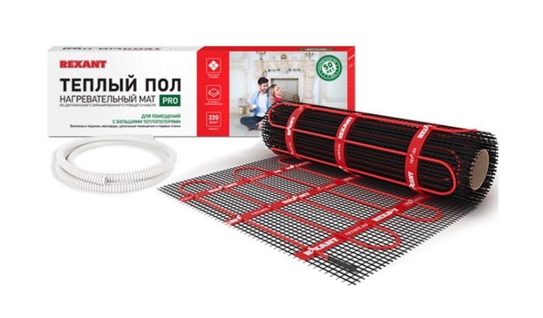 Нагревательный мат REXANT PRO RNX-1-220, двухжильный, площадь обогрева 1 м2, длина 2 м, ширина 0,5 м, мощность 220 Вт