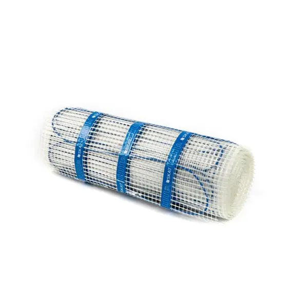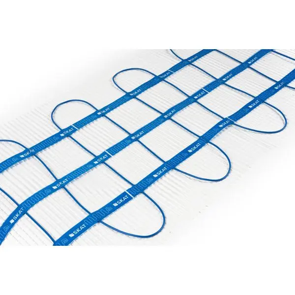Электрический теплый пол SKAT HT MAT PRO состоит из отрезка тонкого двухжильного нагревательного кабеля, уложенного змейкой и закреплённого на стеклосетке. Нагревательный кабель с одной стороны замуфтирован, с другой соединён с силовым шнуром посредством опрессовки. Место соединения силового шнура и нагревательного кабеля герметично закрывается соединительной муфтой. Температура на оболочке нагревательного мата +47°С (при температуре окружающего воздуха +20°С).