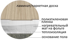 Укладывается под быстро устанавливаемые декоративные покрытия - идеальный теплый пол под ламинат, паркетную доску, линолеум или ковролин.