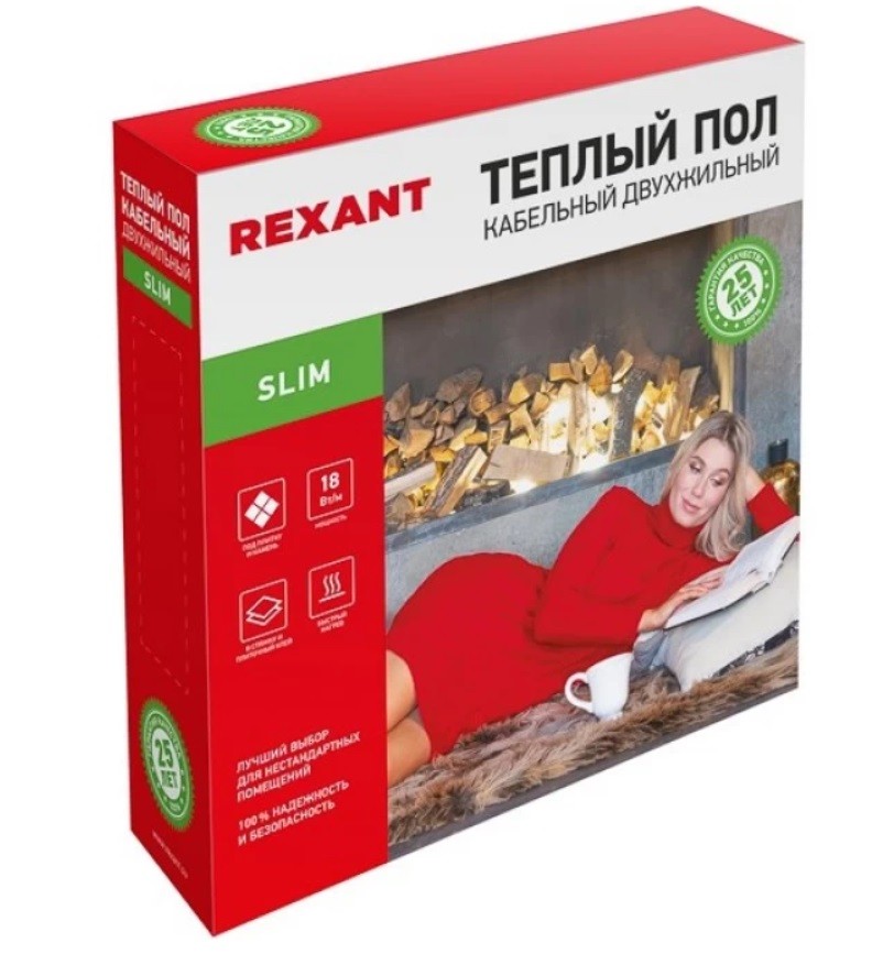 Нагревательный кабель REXANT Slim RNB-145-2600, монтаж в плиточный клей, в стяжку, площадь обогрева 14,6-16,5 м2, длина кабеля 145 м, мощность кабеля 2600 Вт