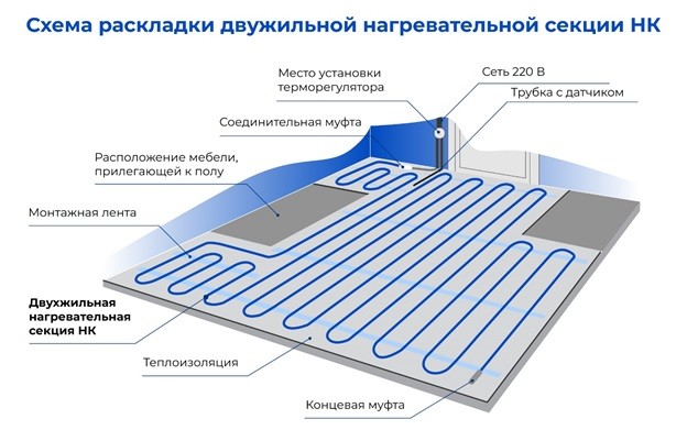 Нагревательная секция SKAT HT - это универсальное решение для любых помещений и подходит для укладки как в стяжку, так и в плиточный клей