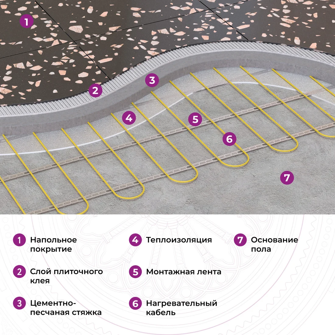 | Способ укладки кабеля | В стяжку, В плиточный клей |