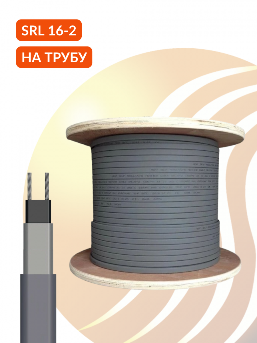 Саморегулирующийся греющий кабель Теплософт SRL 16-2 предназначен для обогрева трубопровода и водостока, представляет собой греющий кабель мощностью 16 Вт/метр погонный, предназначен для монтажа на трубу и под теплоизоляцию.