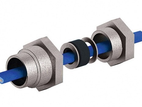 Электропитание подводится с одного конца. В конце участка обогрева установлена концевая муфта, размещаемая внутри трубы и обеспечивающая защиту IP68. Для ввода в трубу используется специальный cальниковый узел, состоящий из двух втулок, двух шайб и резинового уплотнения.