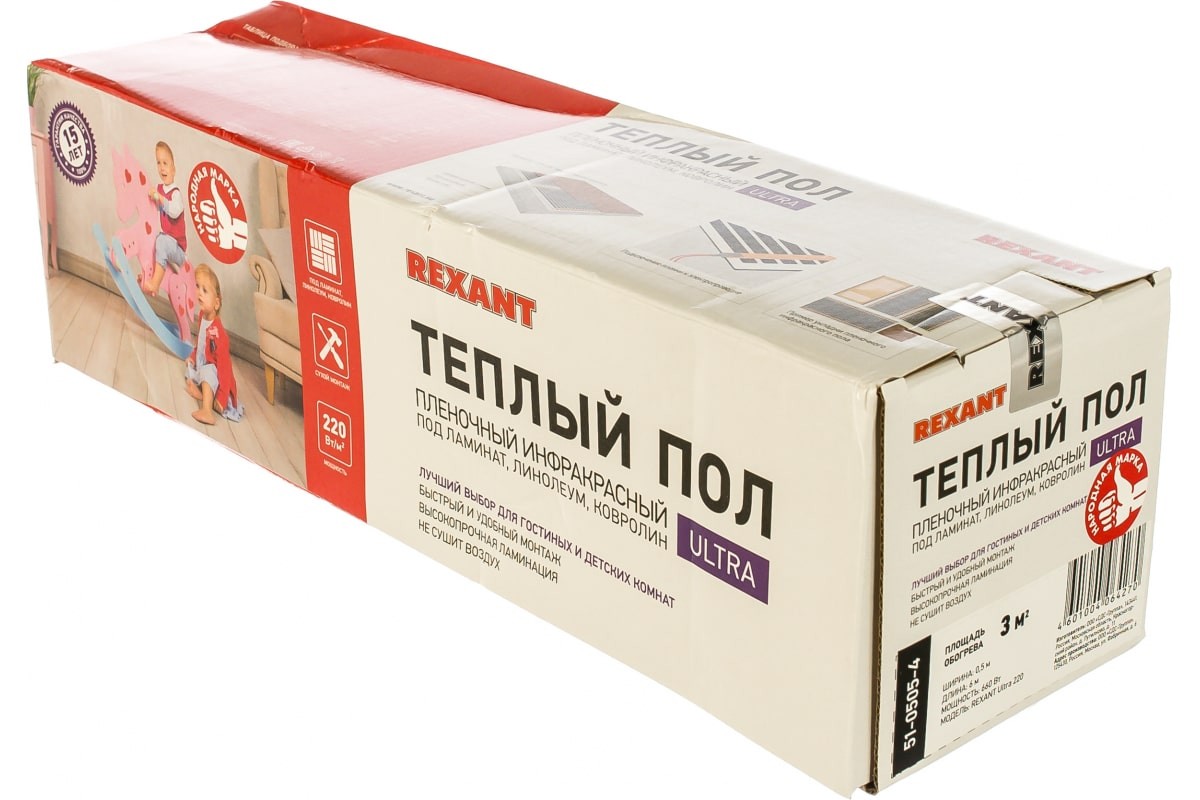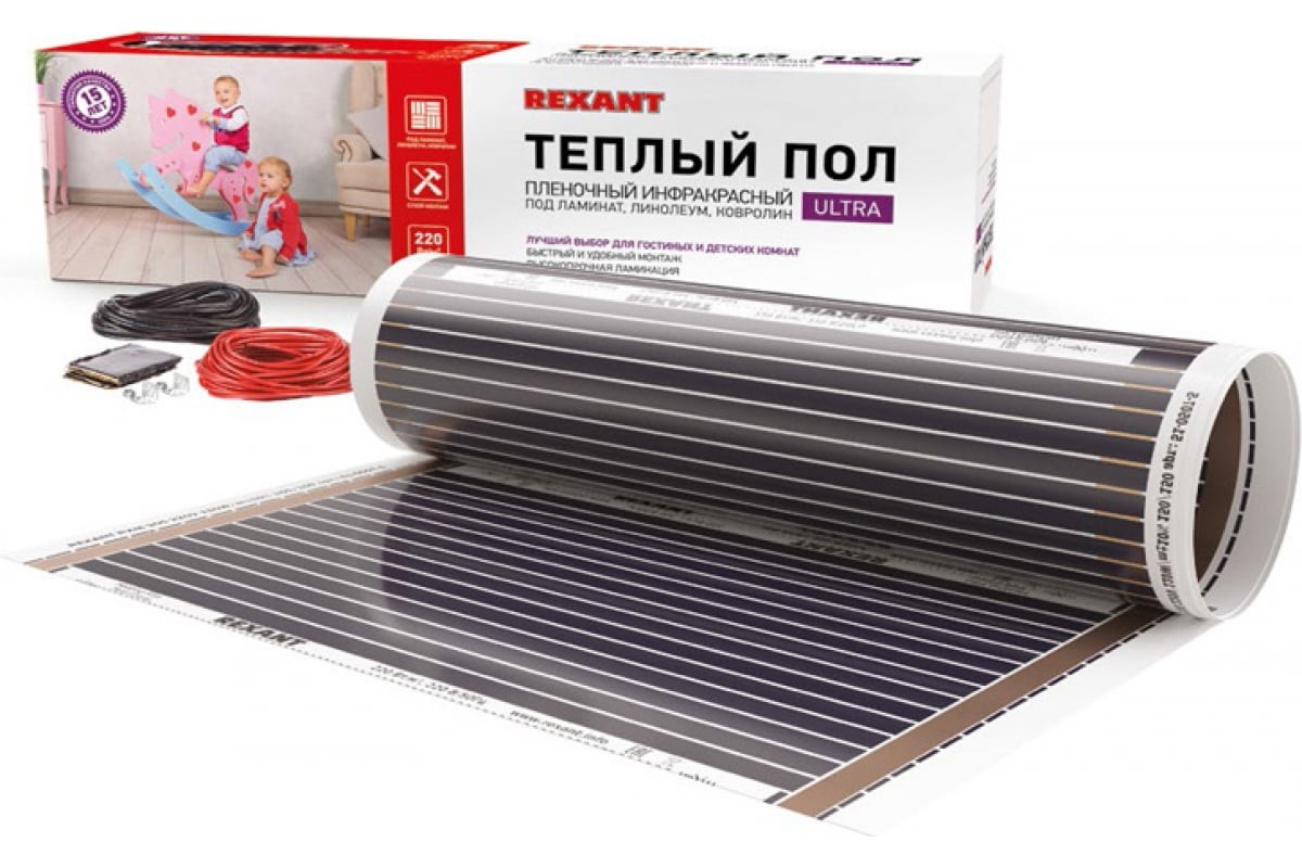 Инфракрасный пленочный теплый пол REXANT Ultra RXM 220 1 м2 220 Вт, мощность 220 Вт, площадь укладки 1 м2, длина полотна 2 м, ширина 50 см