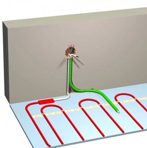 • при монтаже в стяжку или плиточный клей датчик помещается в гофротрубку при помощи зонда.
