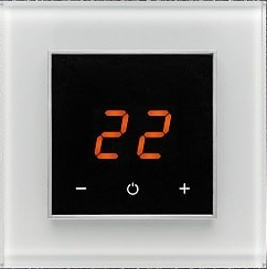 Терморегулятор AURA ORTHO PURE WHITE Classic - это термостат с сенсорным экраном, предназначенный для постоянного поддержания заданной температуры пола. Прибор оснащен выносным датчиком температуры. Для включения/выключения прибора, а также для установки заданной температуры используются три сенсорных клавиши, расположенные в нижней части экрана.