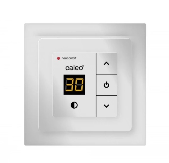 Встраиваемый цифровой терморегулятор с кнопочным управлением и возможностью монтажа в рамки известных производителей, таких как: ABB (серия Basic 55), Legrand (серии Valena и Suno), Gira, Jung (серия ACreation и Eco Profi), Simon (серия 15), требуется применение специальных адаптеров CALEO (идут в комплекте с терморегулятором). Совместим с рамками Schneider Electric серии UNICA и UNICA QUADRO без адаптера. Имеет кнопочный тип клавиатуры, ночной режим индикации и блокировку клавиатуры.