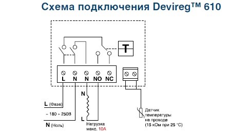 Терморегулятор DEVIreg™ 610 с 2-х полюсным выключателем и проводным датчиком для регулировки температуры