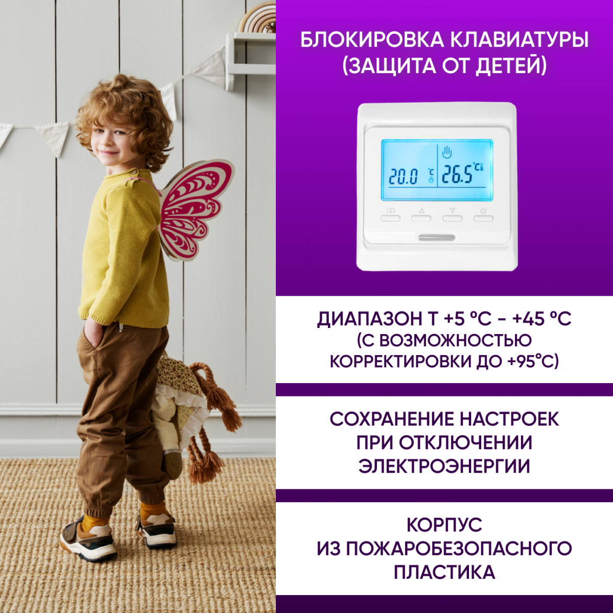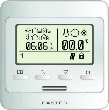 Терморегулятор EASTEC E 51.716 предназначен для управления электрическими системами обогрева помещений (нагревательными матами, пленочными нагревателями или кабельными секциями). Терморегулятор EASTEC E 51.76 - программируемый с ЖК дисплеем, оснащен двумя датчиками температуры - встроенным и выносным, что позволяет более эффективно управлять регулировкой температуры и минимизировать затраты на электроэнергию.