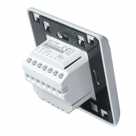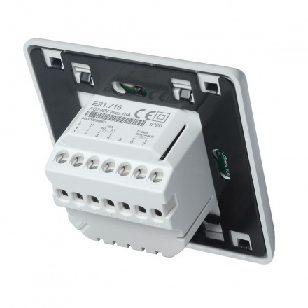 Жидкокристаллический сенсорный дисплей, программируемый. Терморегулятор электронный E91.716 предназначен для автоматического регулирования температуры (поддержания заданной пользователем температуры) в помещениях оборудованных системами отопления «теплый пол» с использованием выносного датчика температуры. Рекомендован для установки с любыми системами электрического обогрева (резистивные кабели и маты, ИК-пленки и т.д). Терморегулятор произведен MENRED GROUP CO., LTD (КНР)