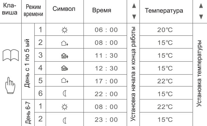 | Датчик пола | NTC (длина кабеля 3 м) |