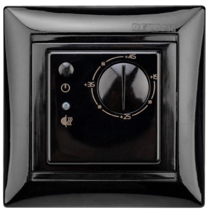 Терморегулятор механический RX-308B REXANT предназначен для управления температурой электрического теплого пола в диапазоне от +15°С до +45°С. Оснащен датчиком температуры пола. Совместим с розетками и выключателями Legrand серии Valena. Корпус изготовлен из пластика черного цвета.