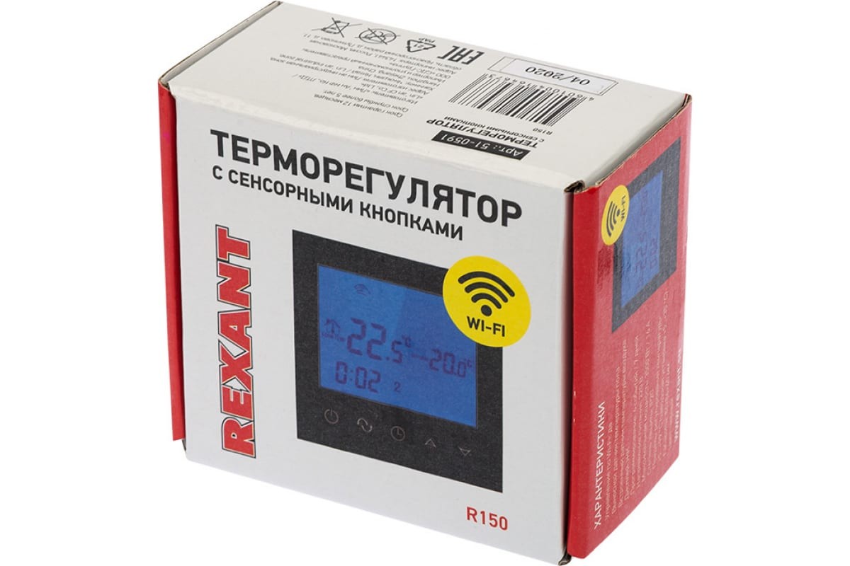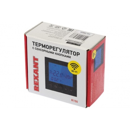 Терморегулятор сенсорный REXANT R150 Wi-Fi черный, программируемый, сенсорное управление, экран, датчик температуры воздуха, монтаж скрытый (внутренний), корпус IP20