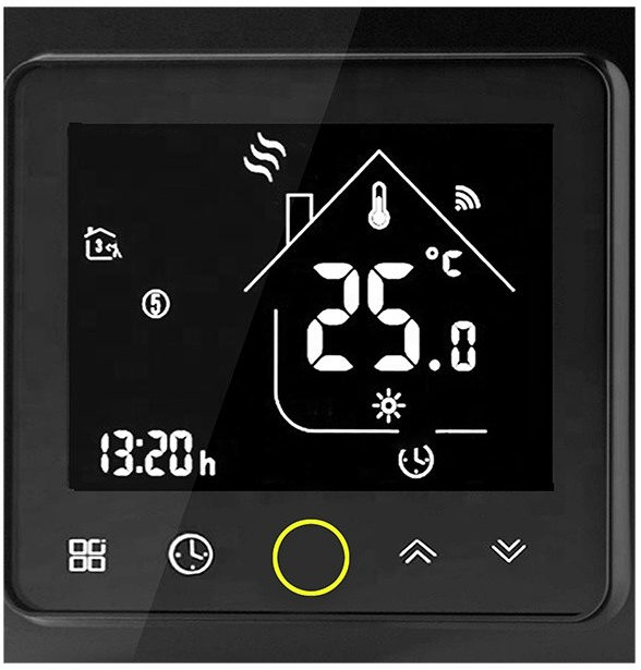 Smart Life AC 603H-B WIFI-программируемый терморегулятор с функцией удаленного доступа Wi-Fi для управления электрическими системами обогрева. Благодаря наличию Wi-Fi легко интегрируется в систему «умного дома» при помощи международного приложения Smart Life или Tuya Smart. Используются операционные системы Android и iOS. Интуитивно понятный интерфейс. Большой экран с подсветкой. Отображение текущей и заданной температуры. Возможность как программируемого (5+2/7 дней или 6+1/7 дней), так и ручного управления. Установка в стандартную монтажную коробку. Сохранение настроек при отключении питания. Огнезащитный корпус. Диапазон установки температуры от +5°C до +45°C (с возможностью увеличения максимальной температуры до +95°C). Современный дизайн, гармонирующий с любым декором.