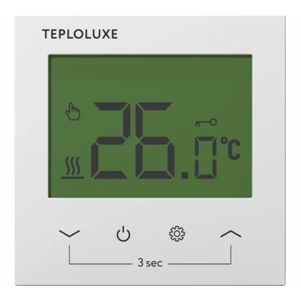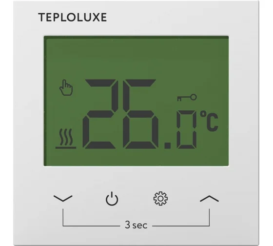 Терморегулятор оснащен информационным жидкокристаллическим экраном, отображающим состояние системы обогрева и сенсорными кнопками управления