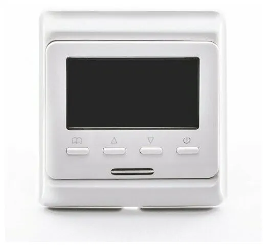 На передней панели терморегулятора E 51.716 располагаются ЖК-дисплей, кнопки управления и датчик воздуха. Терморегулятор предназначен для поддержания температуры пола в пределах от +5 °С до +90 °С. Работать терморегулятор может в трех режимах: ручном, программируемом и комфортном.