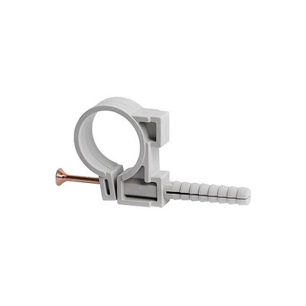 Крепление пластиковое 32 мм с дюбель гвоздем (бобр) для крепления труб