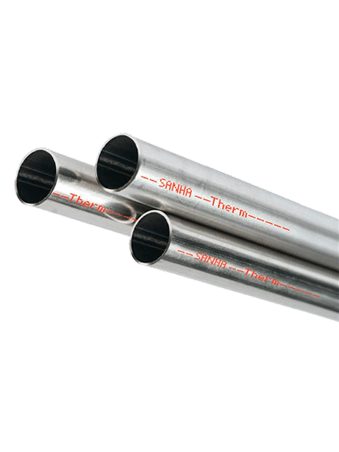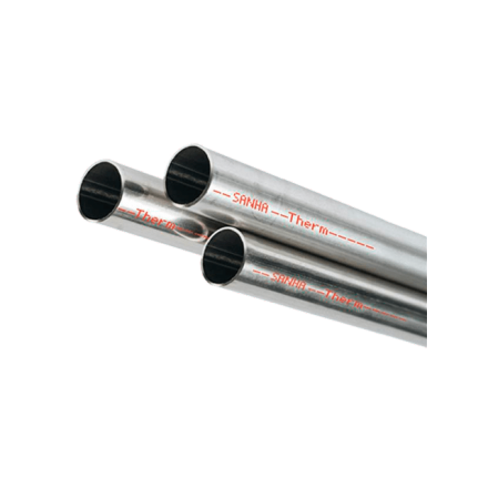 Система SANHA-Therm включает в себя полный комплект пресс-фитингов с уплотнительным кольцом и трубы из высокоуглеродистой стали. Сварные тонкостенные трубы SANHA изготовлены в Германии по DIN EN 10312, имеют наружный защитный слой из цинка нанесенный гальваническим методом и соответствуют строгим европейским требованиям. Адрес завода : Deutschland, 01909, Großharthau-Schmiedefeld, Hauptstraße 76.