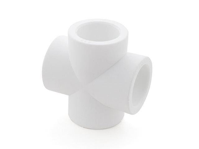 Крестовина полипропиленовая позволяет выполнять пересечение полипропиленовых трубопроводов, лежащих в одной плоскости, без применения дополнительных фасонных деталей. Это сокращает время и стоимость монтажа, освобождает рабочее пространство, которое занимал бы отвод, и полученное соединение смотрится гораздо эстетичнее вариантов, смонтированных с использованием других фитингов. Метод монтажа - раструбная сварка.