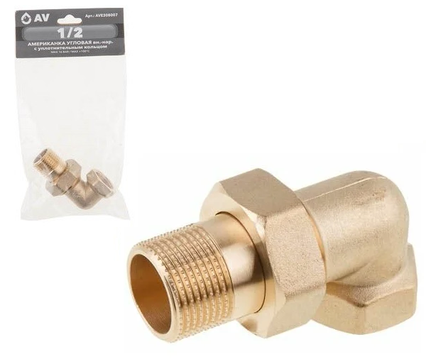 Американка угловая 1/2" с внутренней-наружной резьбой AV Engineering (AVE308007)
