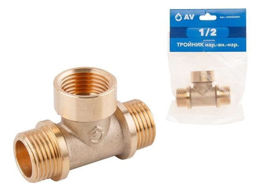 Тройник латунный наружная-внутренняя-наружная 1/2" AV ENGINEERING (AVE306007)